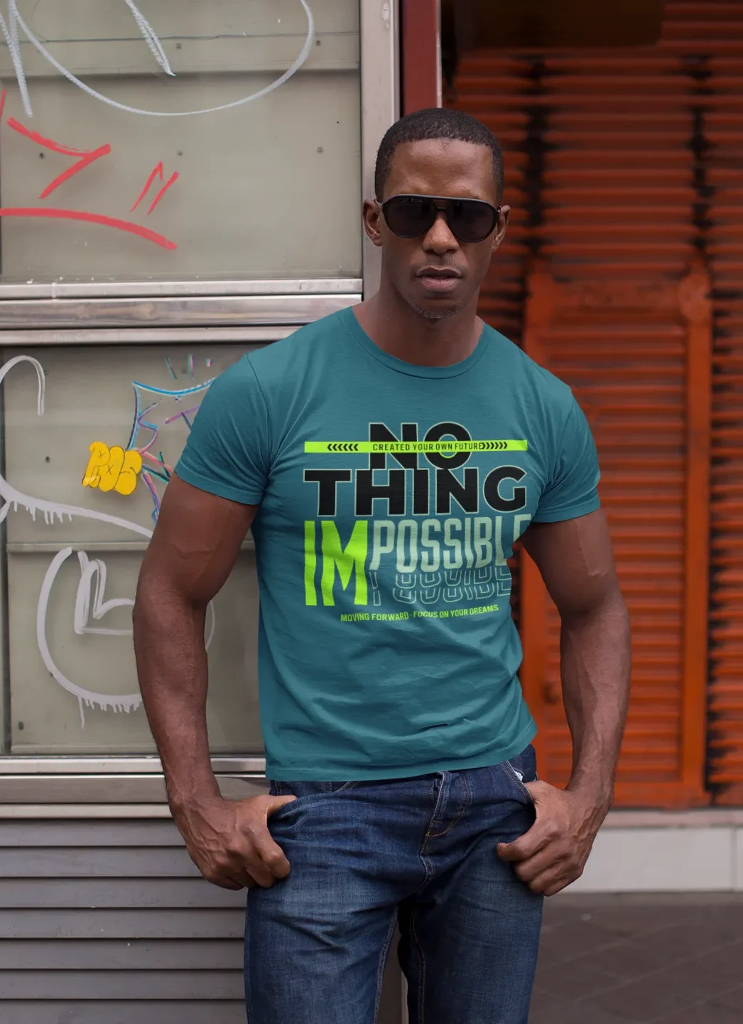 Marca la diferencia con la camiseta "No Thing Impossible". Esta prenda va más allá de un simple diseño; es un manifiesto de tu compromiso con el crecimiento personal y la superación. La tipografía de la palabra "IMPOSSIBLE" está compuesta por bloques y patrones que evocan una construcción sólida y un espíritu inquebrantable. El mensaje "Moving Forward, Focus On Your Dreams" complementa el diseño, creando una pieza que fusiona la moda con una mentalidad ganadora. Con esta camiseta, llevarás un símbolo de tu propia resiliencia.