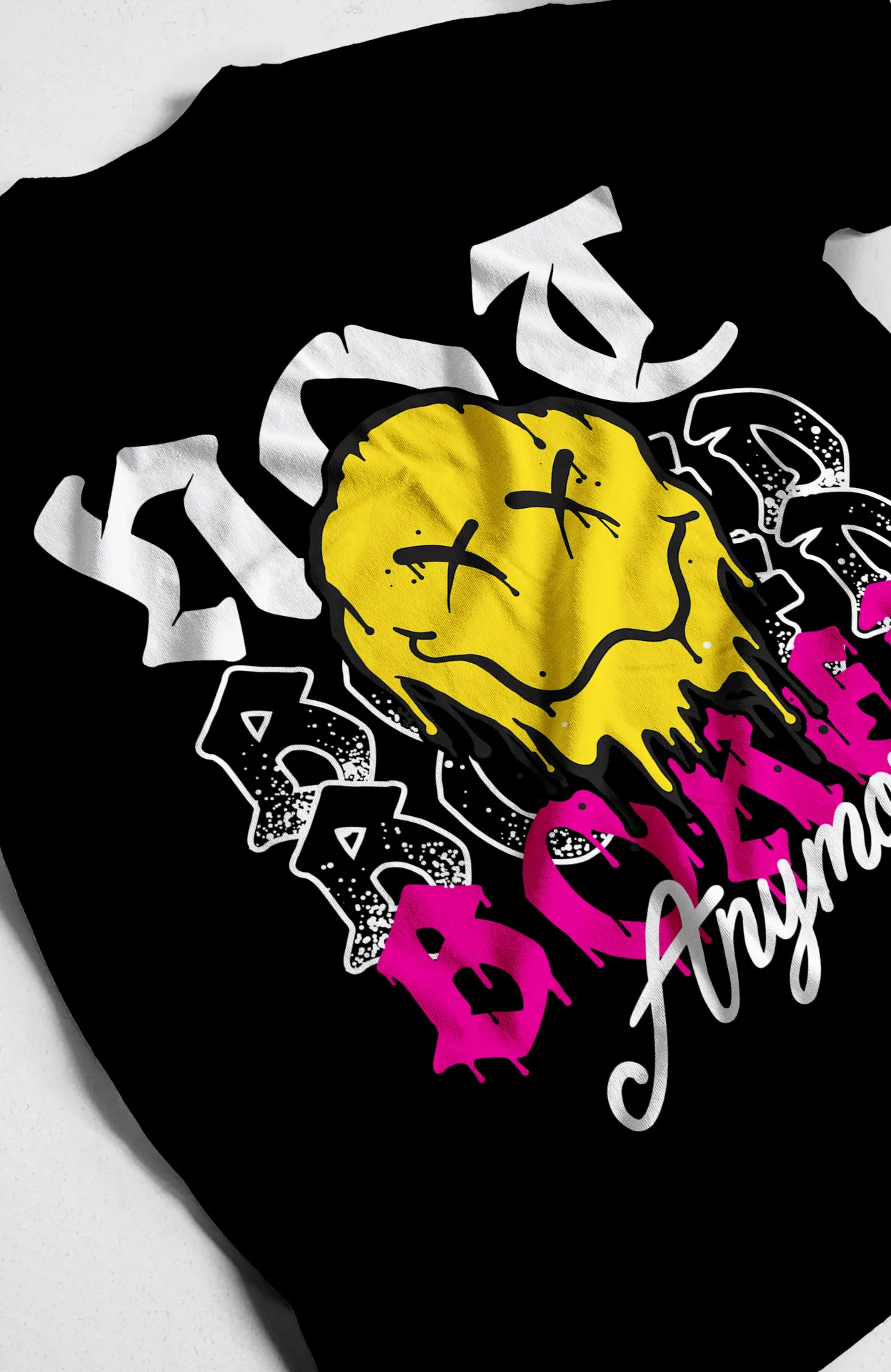 Ponte los audífonos y déjate llevar por el ritmo con la camiseta "Not Bored Anymore". Esta prenda no es solo ropa; es un manifiesto de tu compromiso con la creatividad y el estilo. El diseño frontal presenta una cara sonriente derretida con un estilo de ilustración audaz, con un toque de arte urbano que le da un toque de arte urbano. Es la pieza perfecta para quienes viven el mundo del arte con un toque de humor y audacia. Con esta camiseta, llevarás un símbolo de tu propia visión y audacia.