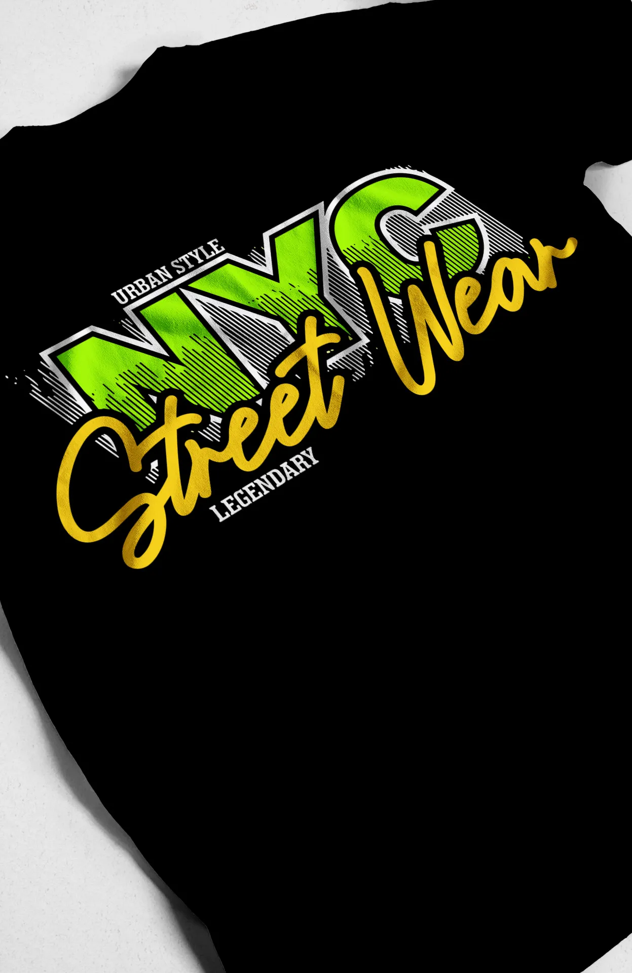 | Estampado | Texto 'NYC Street Wear' en tipografía audaz y moderna |
