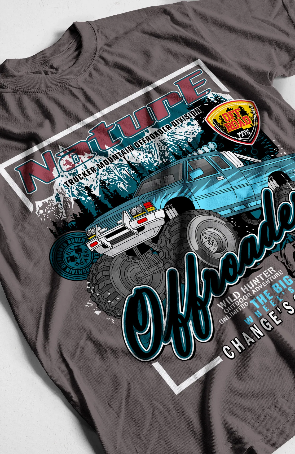 Motivo de Diseño Monster trucks y camionetas todoterreno con la frase "Nature Off-Road"