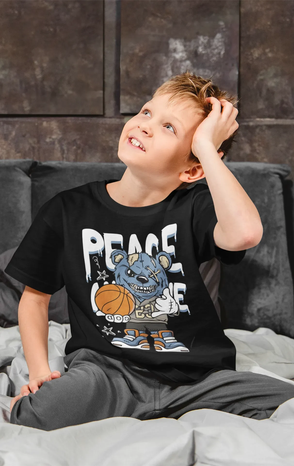 | Motivo de Diseño | Oso de peluche con balón de baloncesto y la frase "PEACE GAME" |