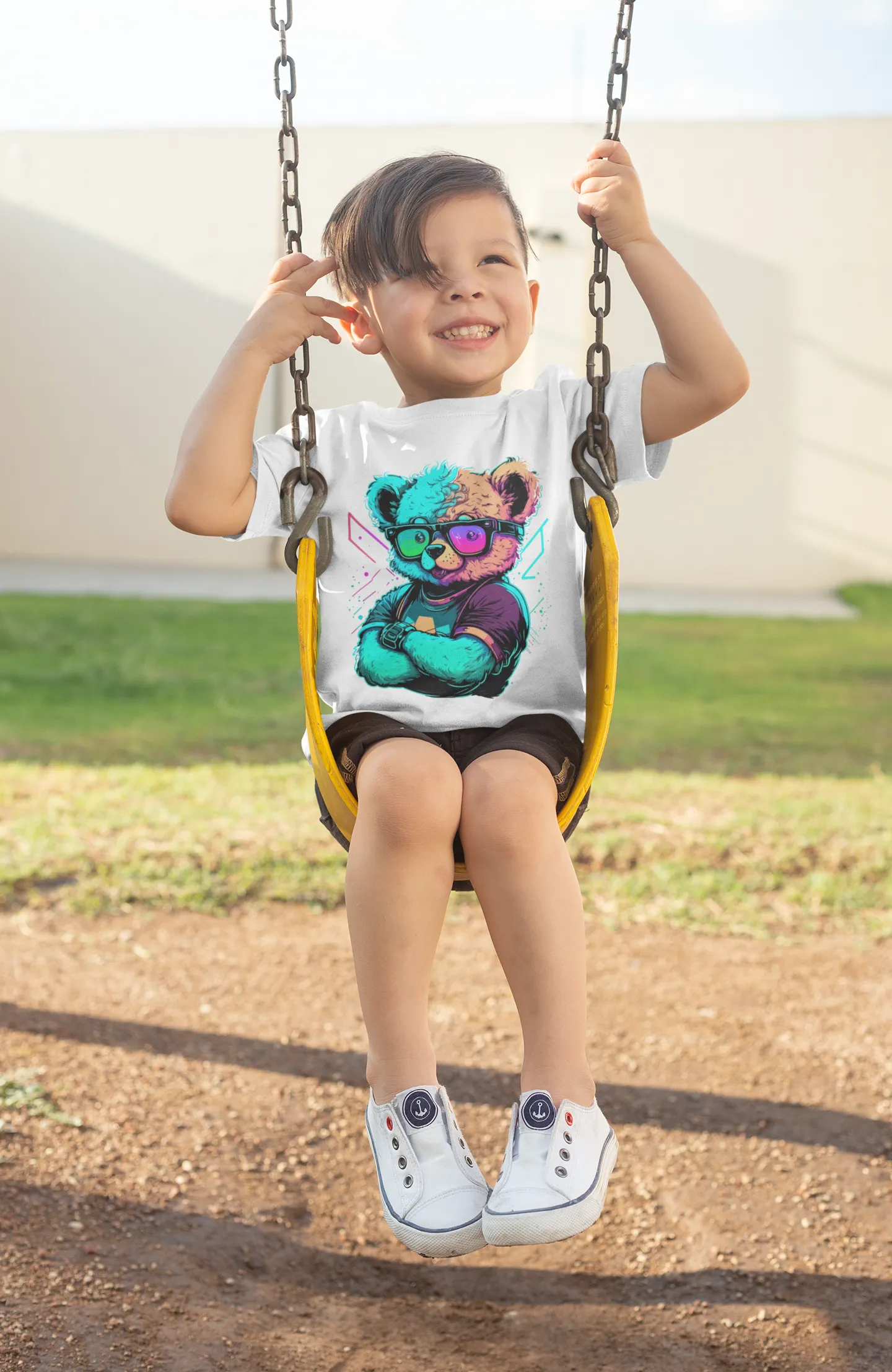 Camiseta Oso Colores Gafas Neón Estilo Audaz