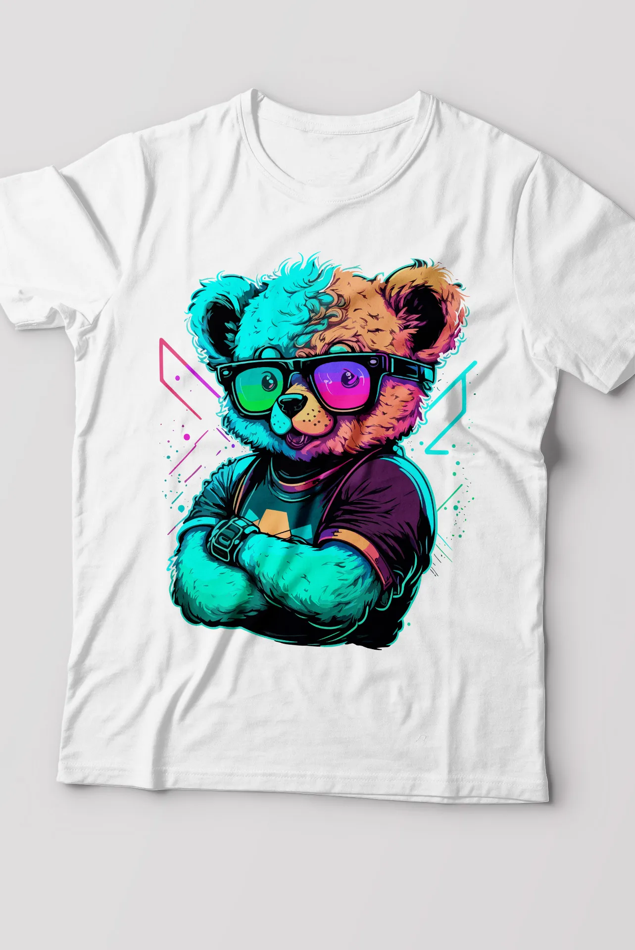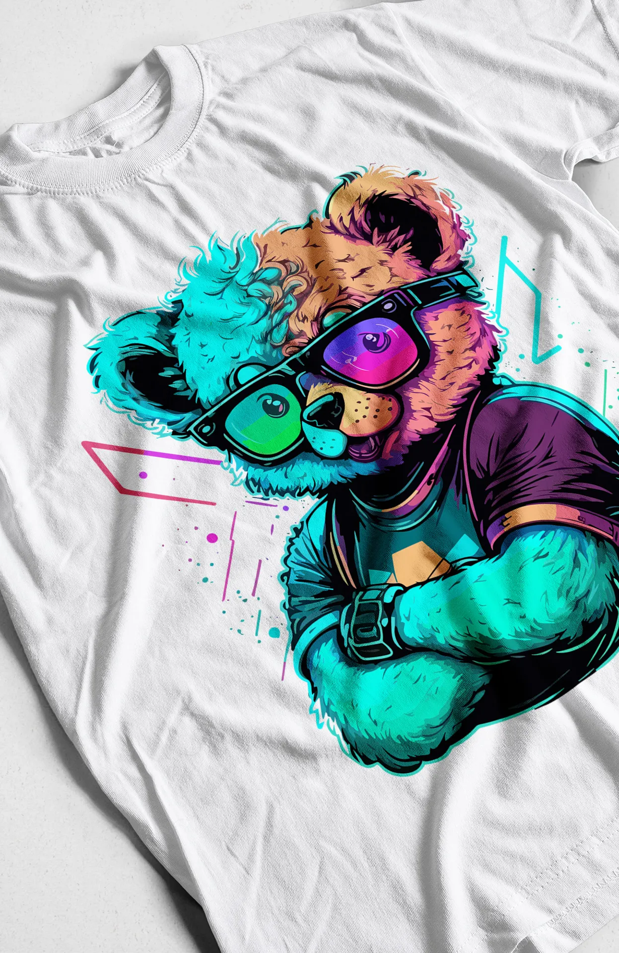 Nombre del Producto Camiseta Oso Colores Gafas Neón Estilo Audaz