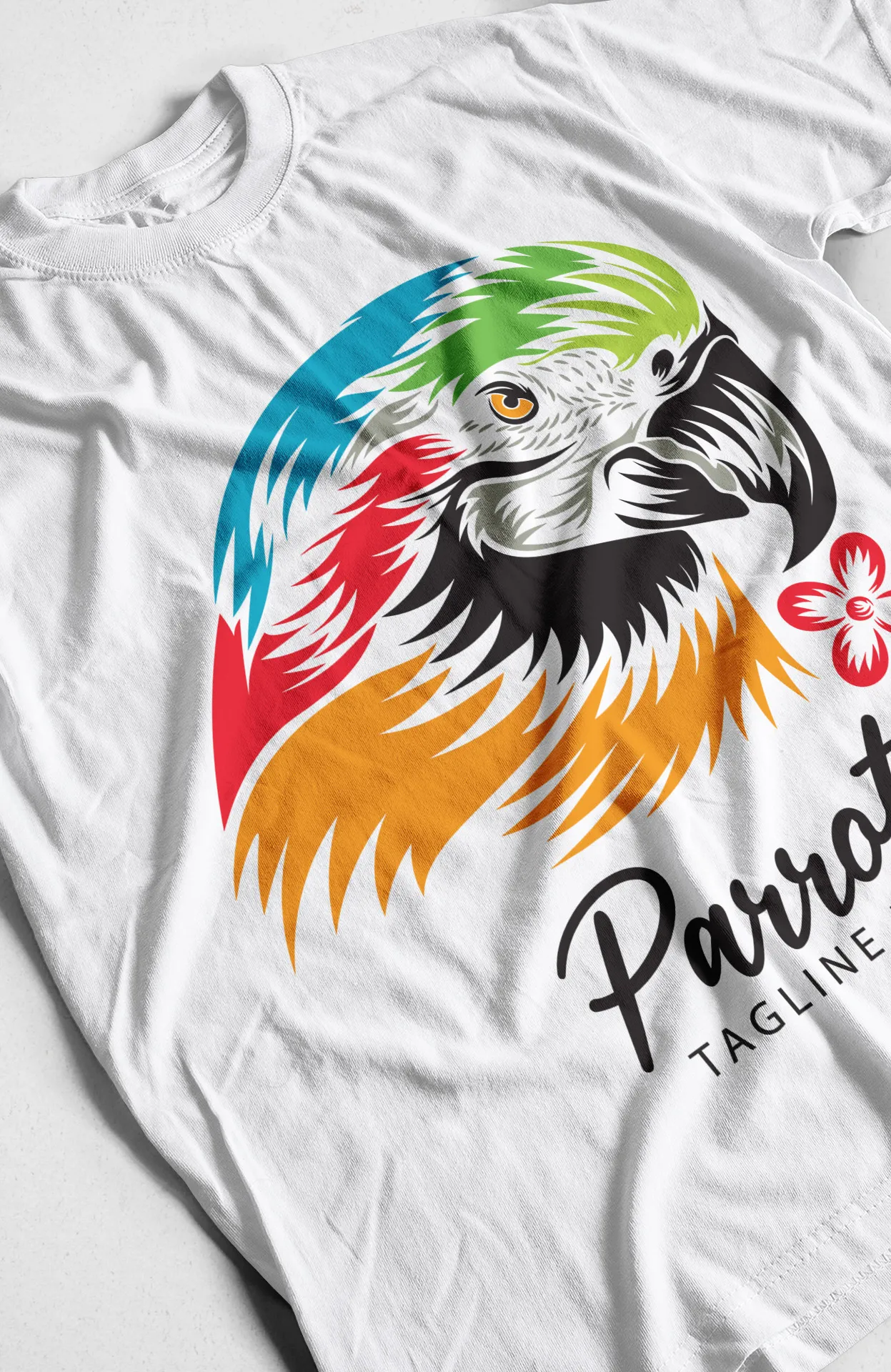 | Estampado | Ilustración de cabeza de loro con texto "Parrots" |