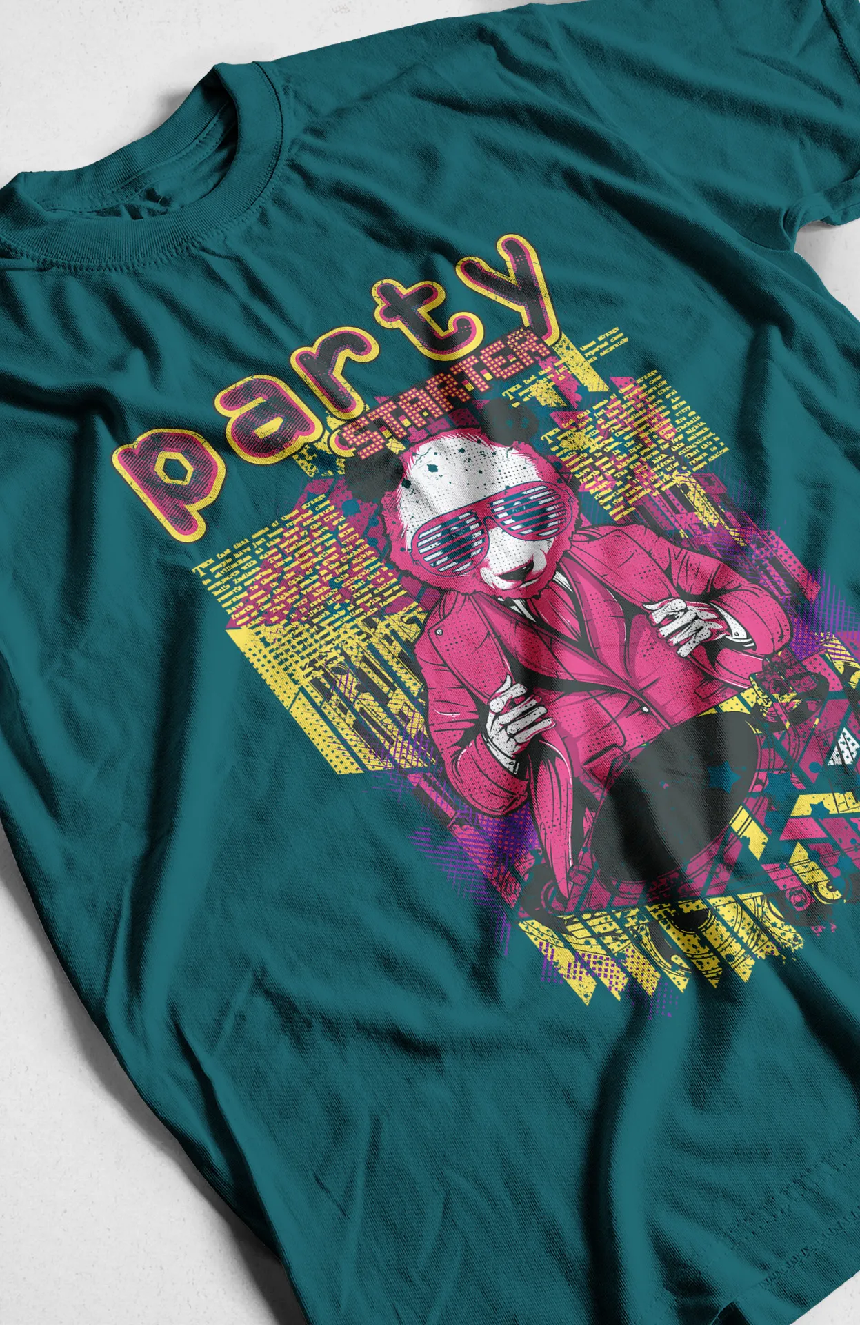 Lleva la diversión a donde vayas con nuestra camiseta "Party Starter". Su diseño vibrante y divertido, protagonizado por un panda con gafas de sol y traje retro, es la prenda ideal para quienes tienen una personalidad alegre y un gusto por lo original. Con una estética que evoca la nostalgia de los 80 y 90, esta camiseta te garantiza un look único y lleno de carácter. Perfecta para salidas nocturnas, festivales o simplemente para animar tu día a día, es la pieza clave para proyectar un estilo audaz y sin preocupaciones.