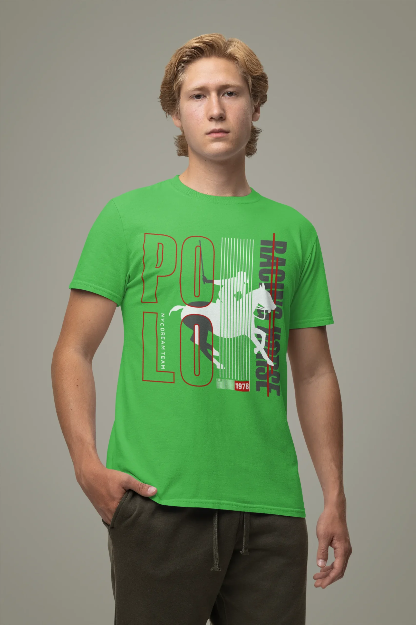 Atrévete a mostrar tu lado más audaz con la camiseta Polo Racing Horse. Esta pieza no es solo una prenda, es un manifiesto de tu amor por los deportes ecuestres y la elegancia. El diseño frontal destaca a un jinete a caballo en plena carrera, con un estilo gráfico que evoca velocidad y dinamismo. El mensaje "Polo Racing Horse" y el año "1978" son un lema para aquellos que sienten la pasión por la competencia y la tradición. Con esta camiseta, llevarás contigo la actitud de un verdadero campeón.