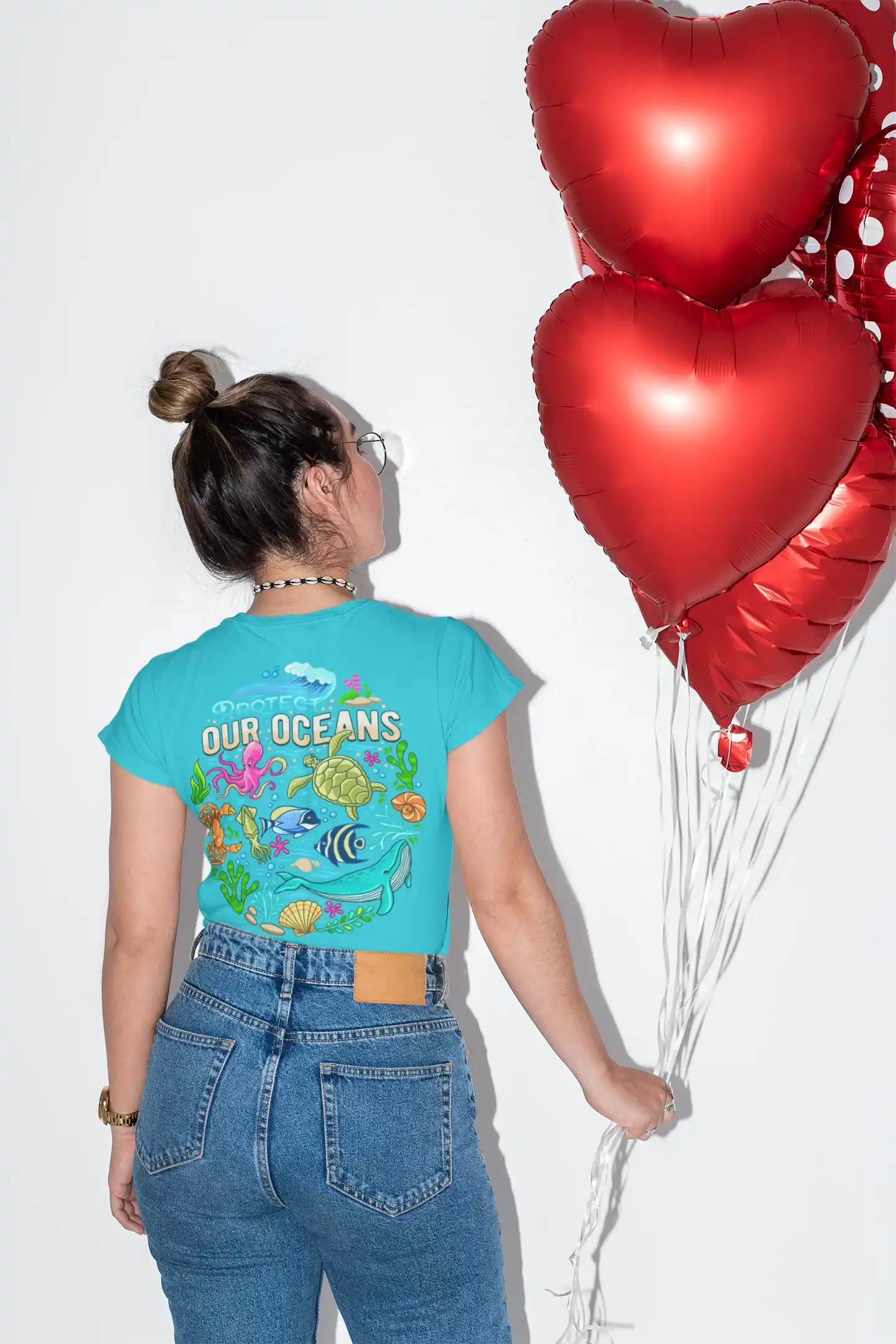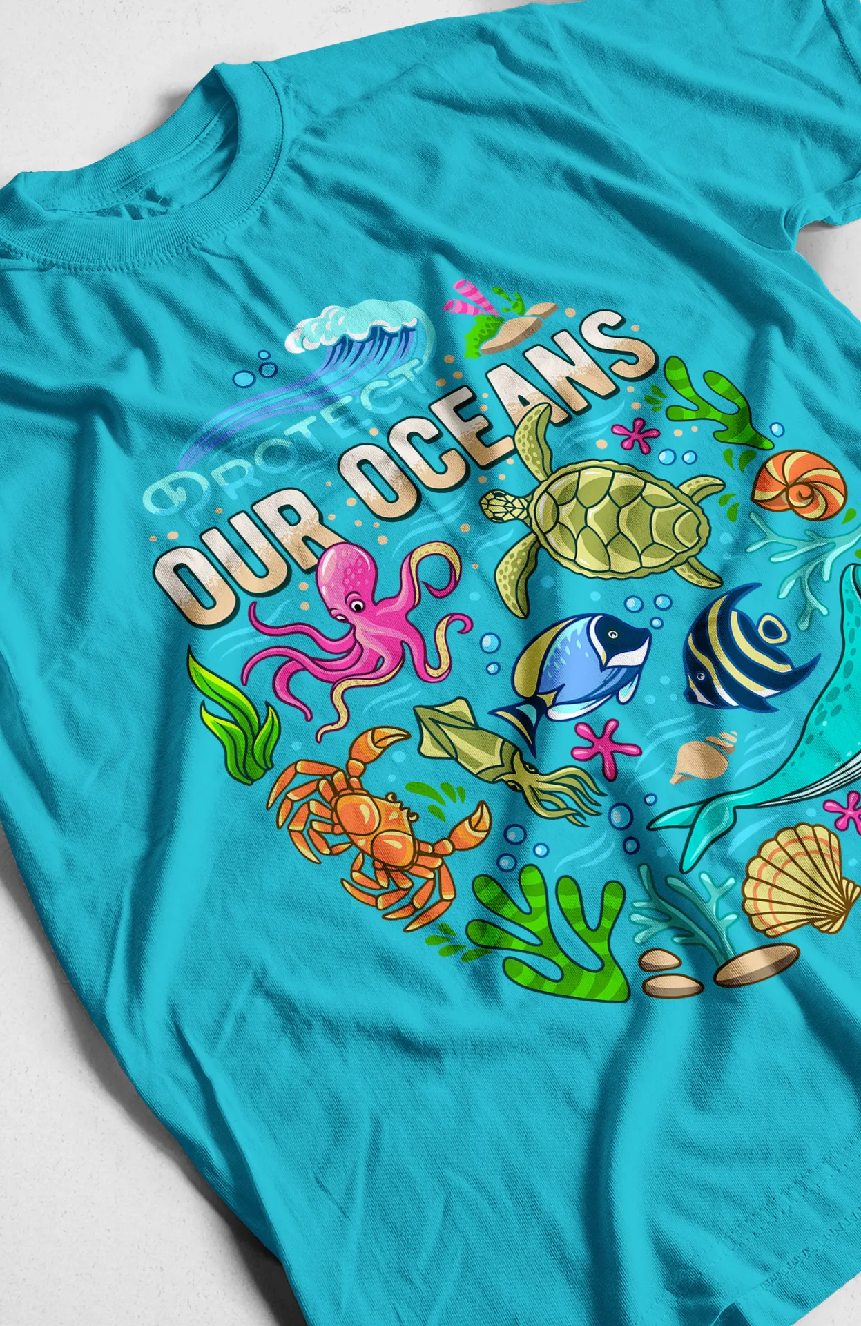 Lleva un mensaje de amor y protección por el planeta con nuestra camiseta "Protect Our Oceans". Su diseño vibrante, que ilustra un ecosistema marino lleno de vida, es una declaración de conciencia ambiental y una invitación a la acción. Ideal para quienes se preocupan por el medio ambiente y desean un look que combine moda y un propósito. Perfecta para un paseo por la playa, un día casual o cualquier momento en el que quieras mostrar tu compromiso con el planeta. Una prenda que no solo vistes, sino que también representa tus valores.