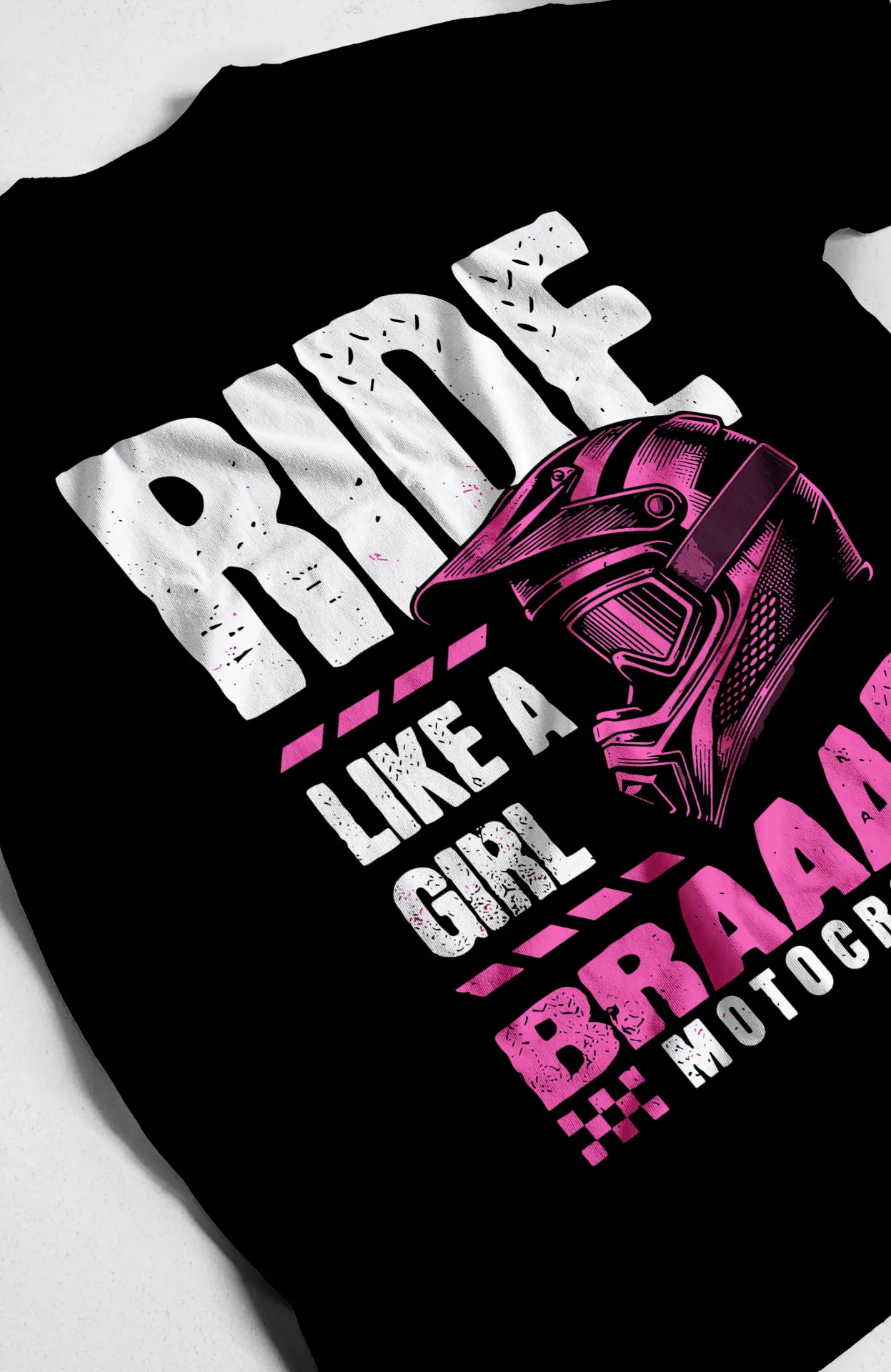 Estampado Casco de motocross con texto 'Ride Like A Girl' y 'BRAAAP!'