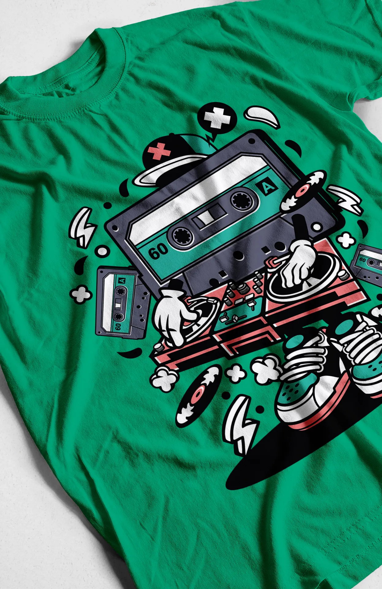 Esta camiseta se distingue por su diseño que fusiona elementos de la cultura retro con un toque futurista, creando un look único y memorable. A diferencia de otras prendas genéricas, esta pieza te permite expresar tu pasión por la música y la tecnología de una manera audaz y con mucho estilo. Es la opción perfecta para quienes buscan una prenda que no solo sea cómoda, sino que también cuente una historia de estilo y originalidad.