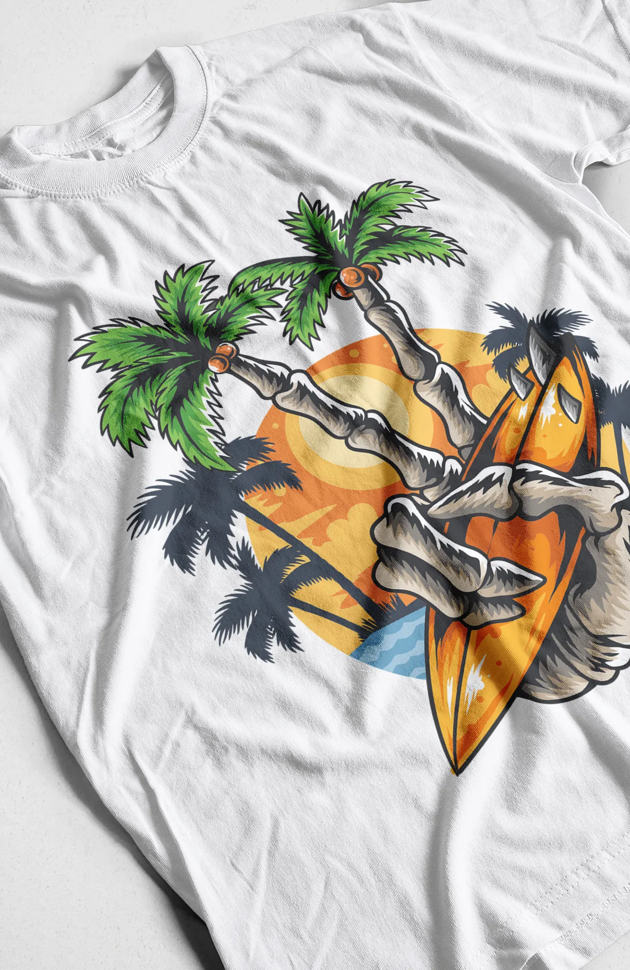 El diseño único con palmeras y tabla de surf es una representación perfecta del estilo de vida playero. Esta camiseta no solo es cómoda, sino que también te permite destacar con un estilo relajado, ideal para los amantes de la playa y el verano.