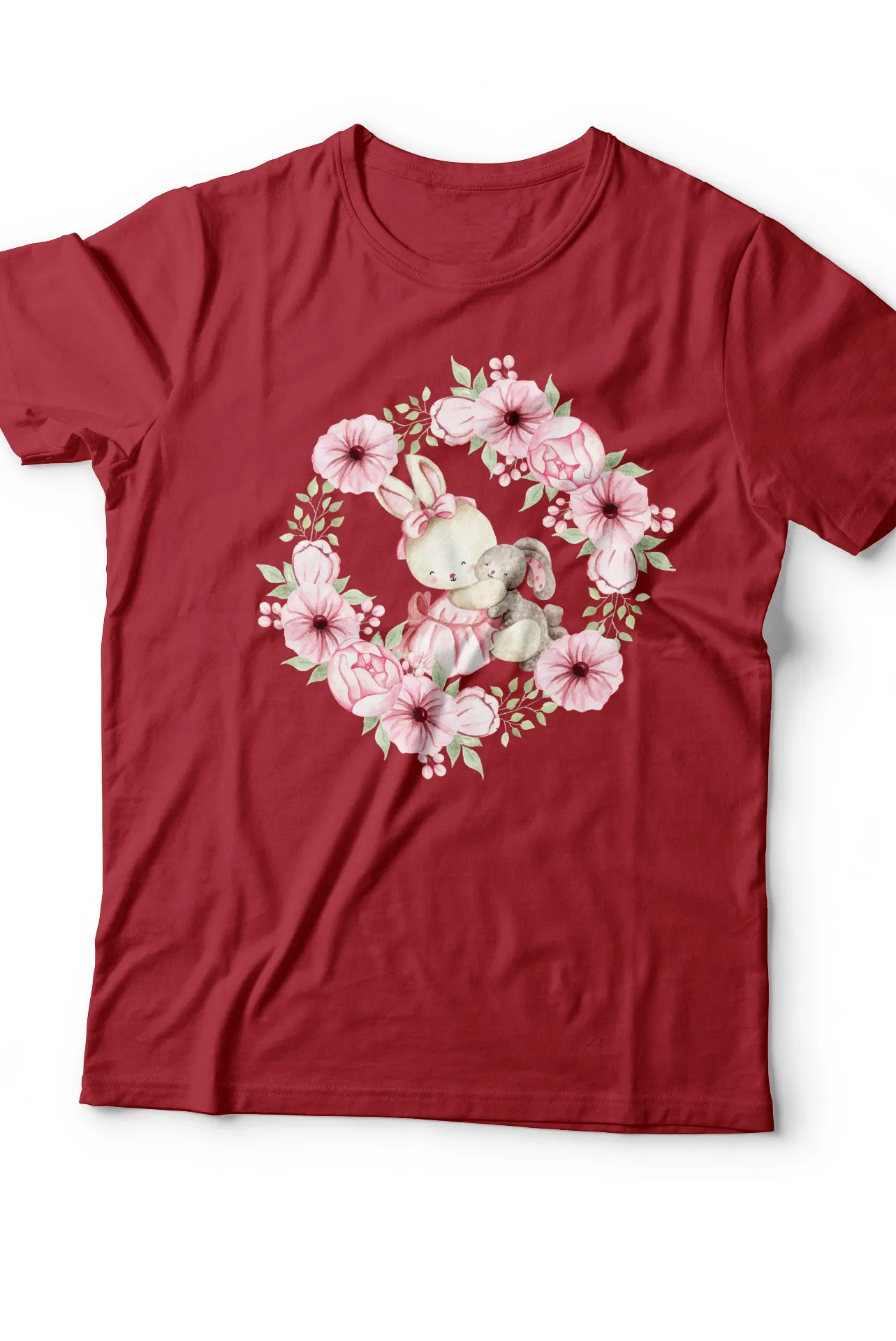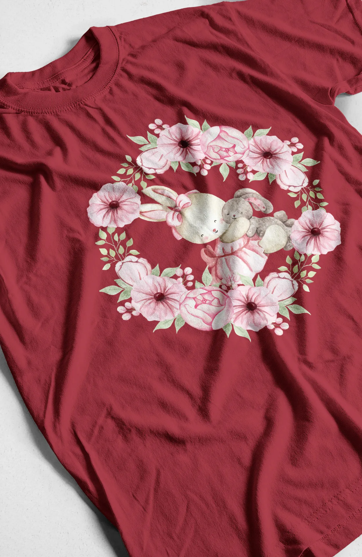 Lleva la dulzura contigo y agrega esta camiseta de conejo con flores a tu guardarropa hoy mismo.
