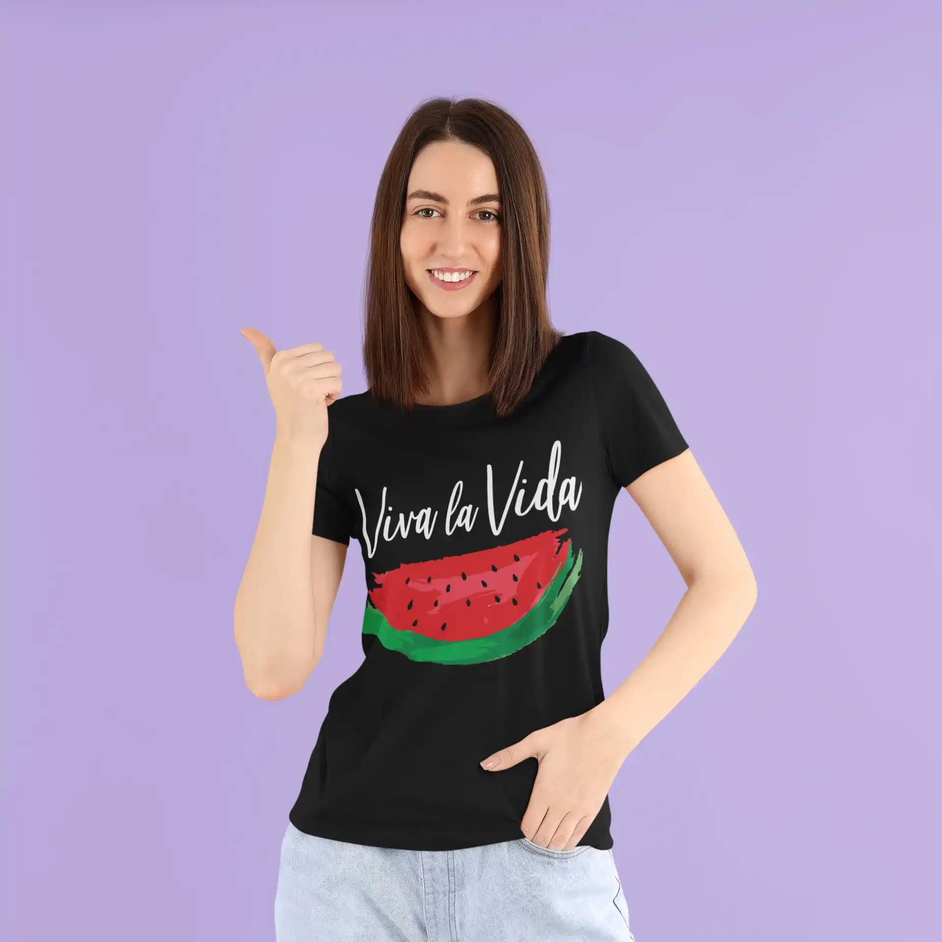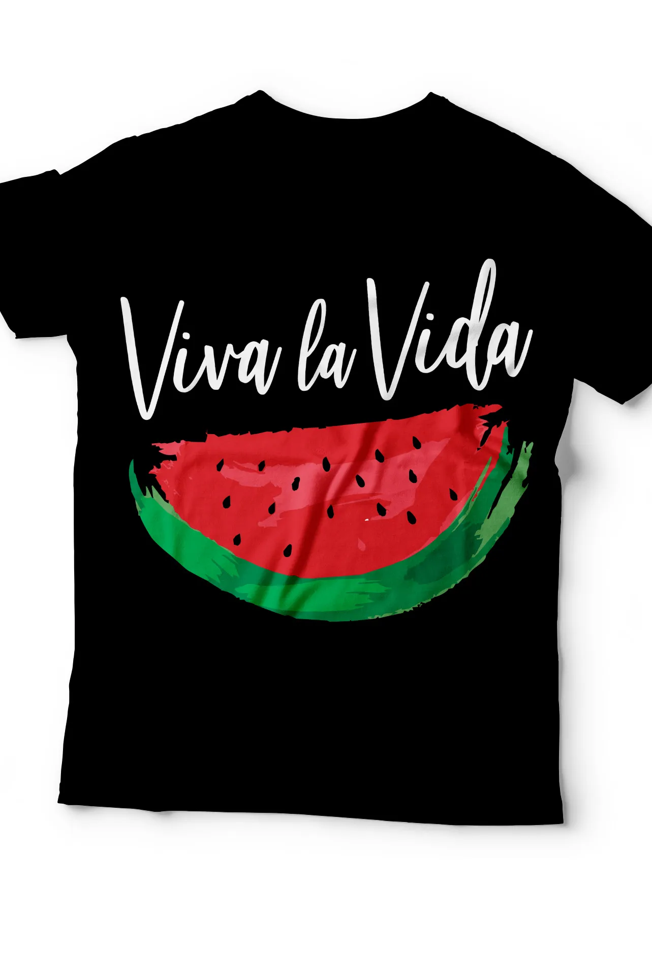 • Diseño fresco y divertido: Con una sandía vibrante y el mensaje "Viva la Vida", esta camiseta es una celebración del buen vivir y de las cosas simples de la vida.