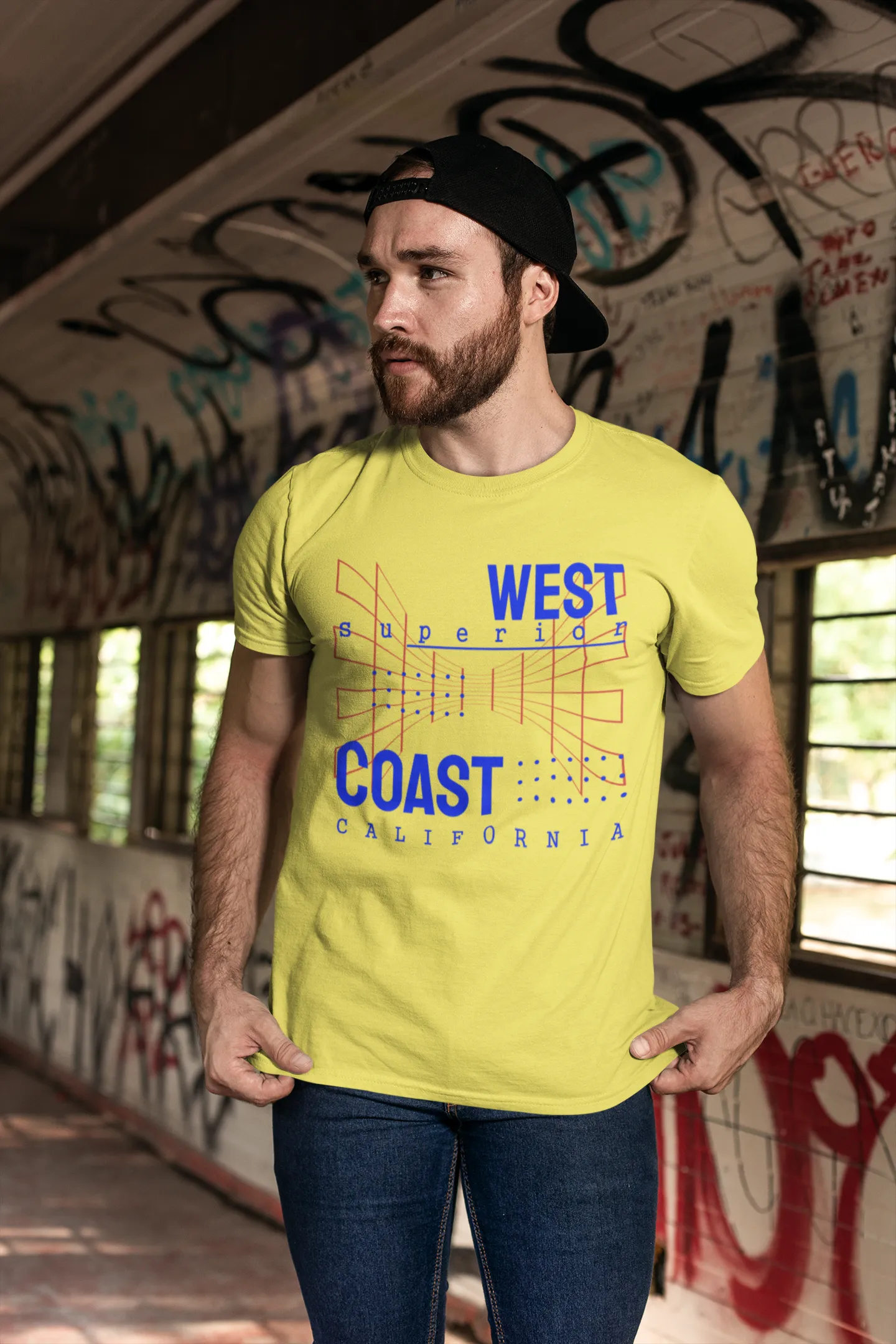 Atrévete a llevar el espíritu de California en tu estilo con la camiseta "West Coast California". Esta pieza no es solo ropa; es un manifiesto de tu compromiso con el estilo urbano y la aventura. El diseño frontal presenta la tipografía de las palabras "WEST" y "COAST" con líneas geométricas y un efecto de profundidad que le da un toque moderno y vanguardista. El mensaje "Superior" y "California" complementa el diseño, creando una pieza que fusiona la moda con una mentalidad de innovación. Con esta camiseta, llevarás un símbolo de tu propia grandeza.
