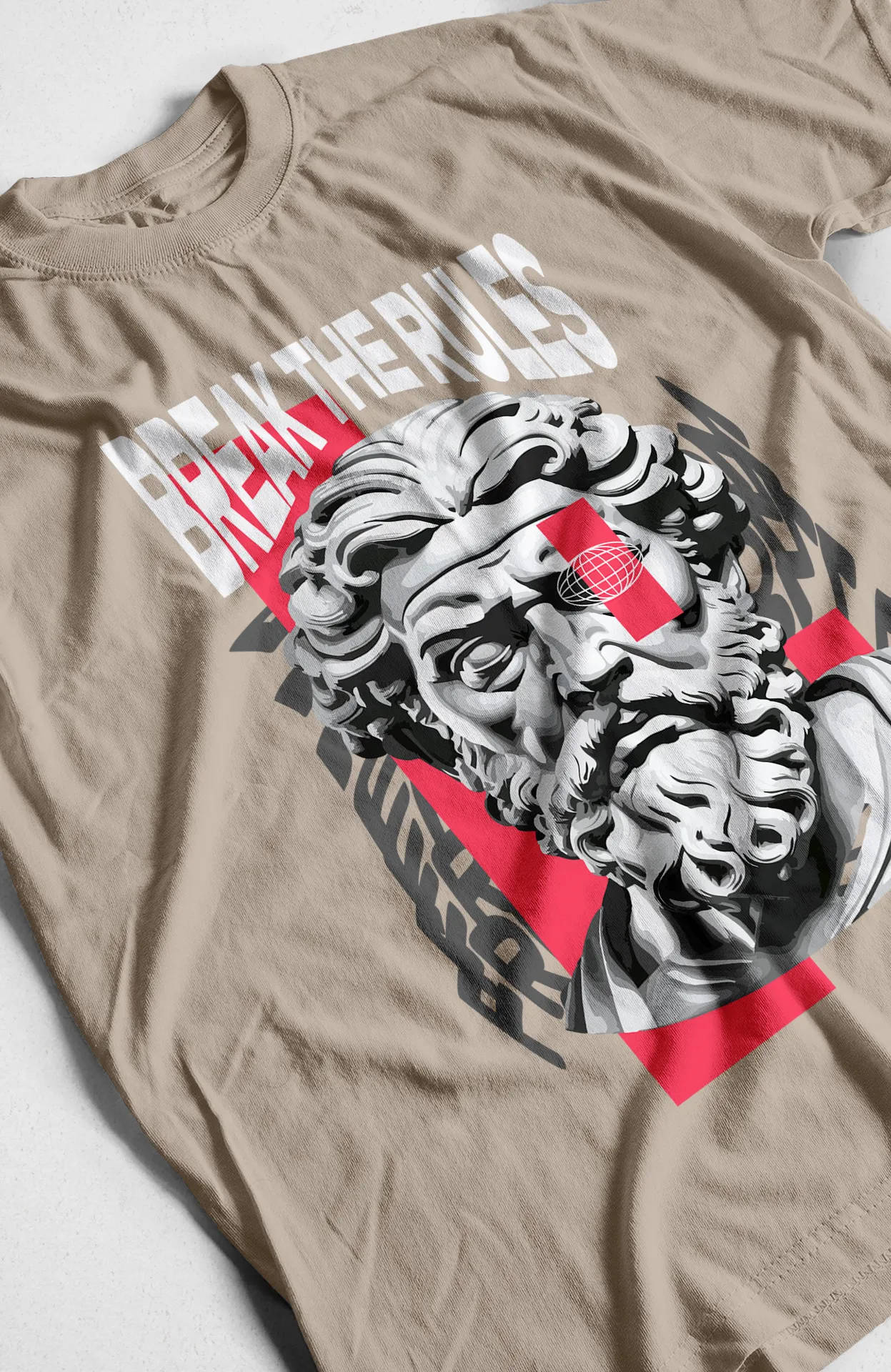 | Motivo de Diseño | Escultura clásica con la frase "BREAK THE RULES" |